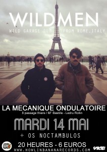 Wildmen are back in Paris! The Italian duo will play a show at La Mécanique Ondulatoire on May 14, sharing the stage with brand new 60’s garage Parisian outfit Os Noctambulos. If you missed them back in November, it’s your chance to see Widlmen on stage, don’t miss it!